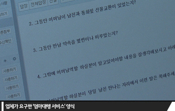 취재진이 직접 ‘애인 대행’, ‘엄마 대행’, ‘질투심 유발 대행’ 등의 서비스를 이용해 봤다.